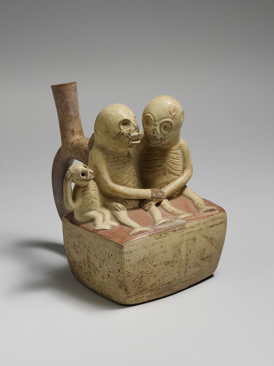 Using the medium of three dimensional ceramic vessels that could have contained liquid moche artisans typically formed the heads of the individuals they wished to portray though sometimes they presented full figures with realistic portrait faces.